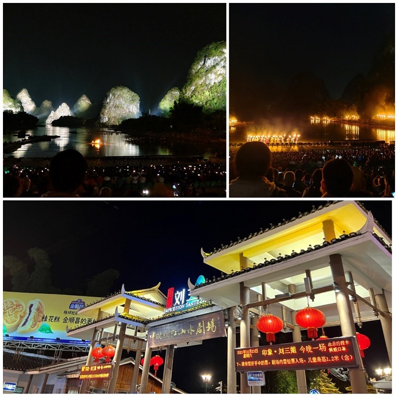 晚餐結(jié)束后,一同觀賞由導演張藝謀導演的全世界第一部全新概念的“大型山水實景演出”——印象劉三姐,欣賞史無前例的桂林漓江風情,感受大型經(jīng)典山歌、民族風情、漓江漁火等元素與方圓兩公里的漓江水域,十二座背景山峰的山水劇場的有機融合;漓江的水,桂林的山,成功詮釋了人與自然的和諧關(guān)系。