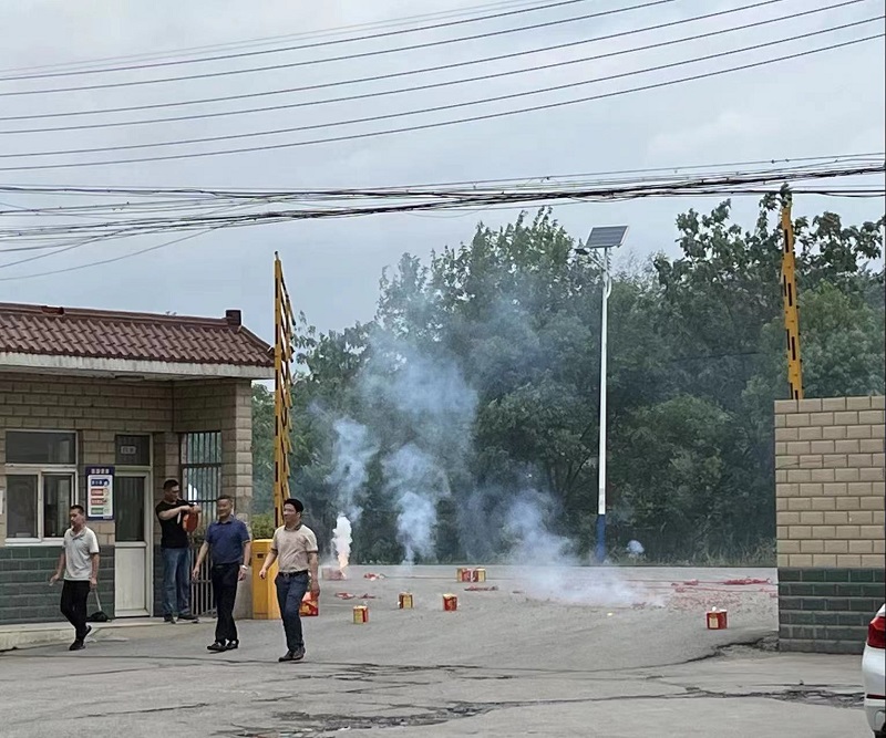 在10:58分吉時(shí),劉總與張總同時(shí)為開工儀式點(diǎn)炮,鞭炮聲一響,代表著益夫三廠-統(tǒng)匯建材正式開工!